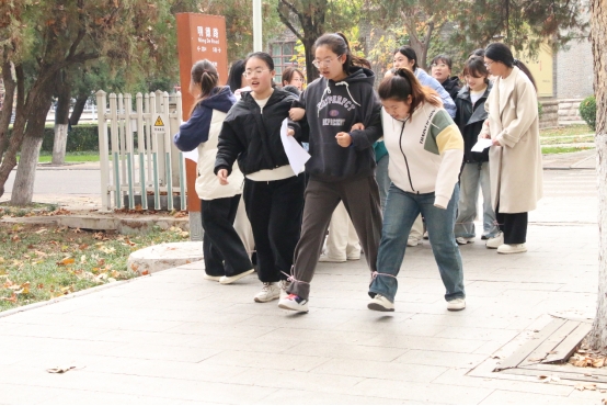 竞赛当日,现场气氛热烈非凡。参赛队伍三人一组,齐心协力地以三人四足形式迅速向各个闯关站点进发。在每个站点,都有热情的志愿者们手持题本等待着参赛队伍。到达站点后,参赛队伍从志愿者手中接过题本,快速寻找属于自己的题目。只见同学们有的迅速分工,一人负责念题,两人负责思考作答;有的小组则是围在一起,小声讨论后再确定答案,每个队员都全神贯注,争分夺秒。每答对一题,队员们的脸上便洋溢起自豪的笑容,手中的答题卡片也增添一枚代表胜利的贴画。比赛过程中,有的小组配合默契,一路过关斩将;有的小组虽遇到难题,但凭借冷静思考和团队协作,努力攻克。现场呐喊助威声此起彼伏,充分展现了同学们的热情与活力。