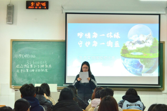 团委、学生会于12月10号在生物楼320教室开展了“珍惜每一抹绿,守护每一滴蓝”生态文明微视频比赛。
