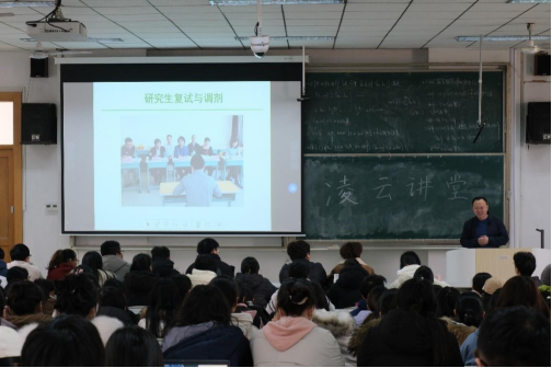 在综合楼201教室举办考研复试与调剂指导专题讲座。本次活动特别邀请邱念伟教授为同学们讲授。