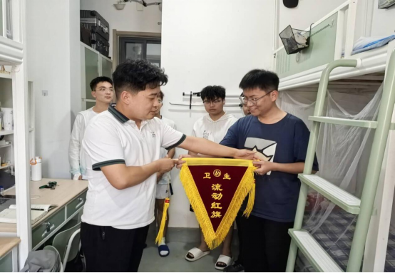 在颁发流动红旗的过程中,老师们认真查看了每个宿舍的卫生及用电安全等情况,对表现优秀的宿舍给予了高度评价,并将流动红旗颁发给宿舍成员。这种形式的奖励,不仅能够激励同学们积极参与宿舍卫生管理,还能够增强同学们的集体荣誉感和归属感,共同营造一个温馨、和谐、健康的宿舍环境。