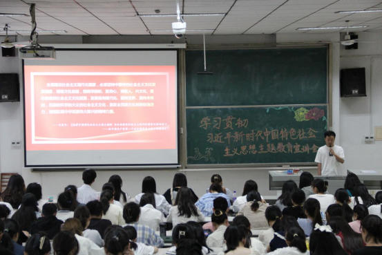 会上,宣讲团从优秀传统文化“两创”和“两个确立”科教融合两个专题进行宣讲。边爽围绕党的二十大精神的基本概况、重要意义、主旨思想及基本要求四个方面为同学们讲解习近平新时代中国特色社会主义思想,帮助同学们进一步领悟党的二十大精神的核心要义、丰富内涵和精神实质,加深了同学们对党的二十大精神内核的理解与领悟。唐金武介绍了意识形态工作的理论内涵以及建设具有强大凝聚力、引领力的社会主义意识形态的重大意义,强化同学们的政治意识和保持定力与洞察力的能力,深化同学们对国家和民族的认同感。田昭霖以“万山磅礴看主峰,党建引领事业兴”为题,阐明了党建引领的理论内涵,激励同学们坚持做到学思用结合、贯通知信行统一,在党和国家的团结带领下,不断为国家事业发展接续奋斗,为实现全面建成社会主义现代化强国、实现中华民族伟大复兴的中国梦而努力奋斗。