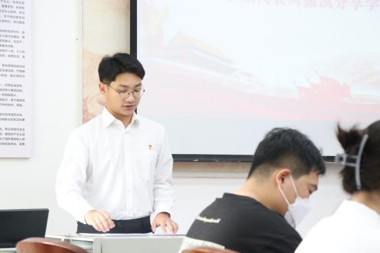 学生代表周振凯围绕会议背景、会议主题和会议内容三个方面对全国学联第二十七届委员会第二次全体会议成果进行了解读,使同学们进一步深入理解体会党的二十大精神,为共创灿烂美好的中国梦而不懈奋斗。学生代表王颖璇结合自己的思想、学习、工作实际,分享了自己的所感所悟,倡导学生干部在服务奉献中实现人生价值,不断提升学生干部的引领力、组织力、服务力。