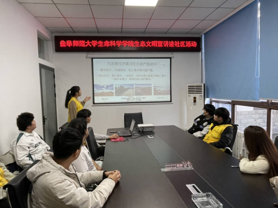 此次宣讲在华沁社区党群服务中心进行,首先进行主题为:“承以生态之花,造就壮美黄河”的生态宣讲。成员们围绕黄河保护,宣传沿黄文明和近年黄河的生态问题以及治理措施,呼吁人民群众保护中国两大母亲河之一——黄河。