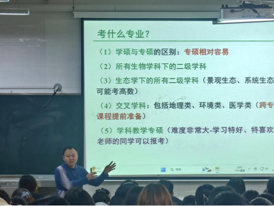2021级生物科学(师范)班和生物工程班分别于11月19日、24日举行了两场考研指导讲座。本次讲座由邱念伟教授担任主讲,为同学们提供全面、系统的考研指导。