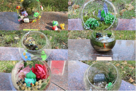活动前期,向参赛选手发放了活动所需的基础物品,自主制作生态瓶作品。同学们奇思妙想、大胆创新,将生态系统专业知识与生态文明理念相融合,创作出了一个又一个精美巧妙的生态瓶。11月19日在生物楼后花园进行作品展示,经过生物楼后花园的师生皆可参与现场投票,根据投票结果选出获奖作品,并对获奖队伍进行表彰。