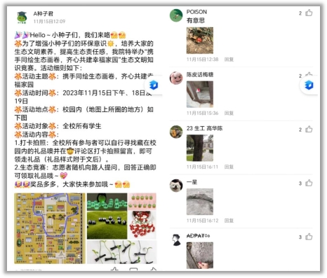 同学踊跃报名参加志愿者招募且在活动中认真负责。活动参与者富有热情,积极参与,通过知识竞答提高了自己的思辨能力和生态素养。