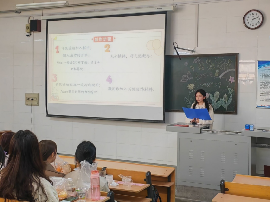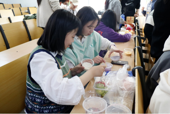 活动伊始,进行“知识问答”环节,主持人与参赛选手积极互动,营造了愉悦轻松的气氛;随后,主持人上台科普果冻制作过程及相关生物学知识;紧接着,各小组同学团结协作,发挥想象力,高效高质地创造出了一款款独具匠心、香味浓郁的果冻;最后,每队代表向评委介绍了其作品构成元素和创作理念,评委品尝后综合外观口味等多方面因素进行了打分。