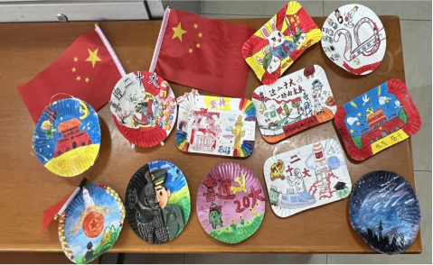 助学部分发活动材料,讲解注意事项;随后,同学们充分发挥想象力和创造力,用颜料在纸盘上绘出了对祖国的热爱与期盼;最后,选手们围绕内容主题、创作灵感等多方面向评委们介绍自己的作品,由评委对作品进行综合评分。至此本次活动圆满结束。