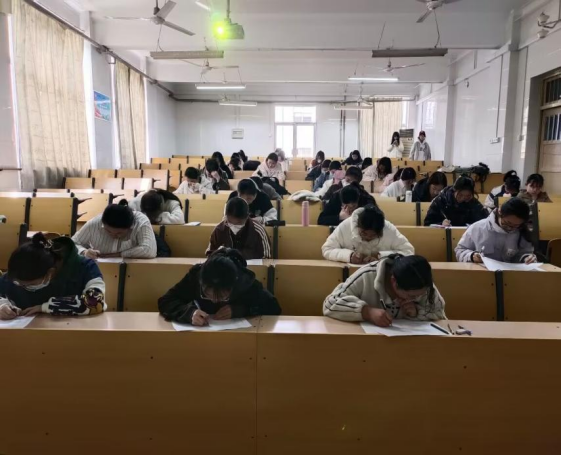 活动伊始,参赛选手按次序入座并上交手机,工作人员发放比赛试卷并巡视考场,维持考场秩序。参赛选手聚精会神的答题,进行细致的检查后将答卷上交于工作人员,并有序离场。经过阅卷评分,2021级朱滋怡喜获一等奖,2021级林红丹、2022级林吉灿斩获二等奖,2021级肖胜男、2022李佳琪、2021级高红芮荣获三等奖。