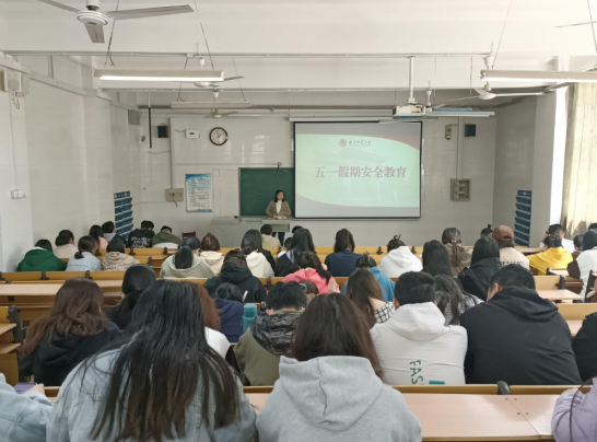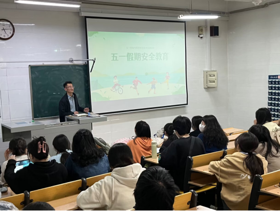 主题班会上,辅导员从交通安全、人身财产安全以及饮食安全、电信安全等方面展开,通过多则案例对学生进行教育引导,强调要增强责任意识、安全意识和法制意识,离校履行请假手续,外出做好自我防护。同学们认真聆听老师的提醒并进行相关记录并填报了五一假期去向表。
