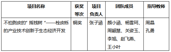 2021年8月1日,由山东省教育厅主办的“建行杯”第七届山东省“互联网+”大学生创新创业大赛总决赛顺利落下帷幕。在周晶老师指导的项目《不怕剥皮的”摇钱树“——栓皮栎的产业技术创新于生态经济开发》获省级铜奖。