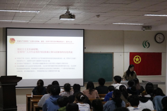 团委书记刘文静老师为同学们讲授团课,“青马工程”全体学员参加了本次学习。