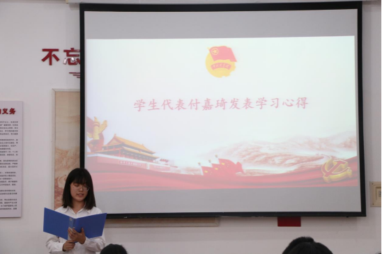 最后,学生代表刘严语、付嘉琦分享学习心得,用亲身感悟激励大家牢记团员使命,不忘初心,矢志不渝,以昂扬姿态奋进新征程。