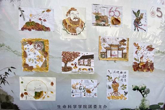 本次活动的参赛选手以小组为单位设计落叶作品。赛前,选手们利用课余时间走出宿舍,走进自然,用心去观察自然之物,亲身感受自然之美。在作品制作中充分发挥想象力,结合学科专业知识将各类落叶进行裁剪、拼接,用更全面的眼光去认识大自然的神奇,用生动形象的作品去诠释落叶之美,为曲园65周年华诞送上了一份独特的贺礼。