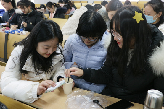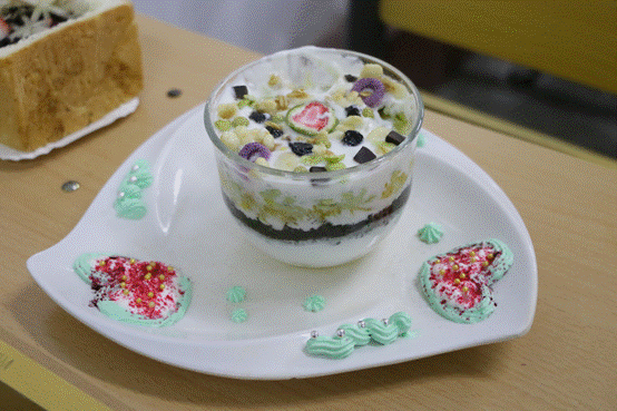 活动伊始,主持人介绍了本次活动的流程和规则,并向同学们详细介绍了酸奶制作的具体步骤。通过合理分工,团结合作,同学们将煮奶、杀菌、接菌种、发酵等制作流程一气呵成,最后大家用水果、巧克力、坚果等辅料进行点缀,精致又美味的“高颜值酸奶”诞生,颜值与味蕾的碰撞给同学们以视觉与味觉上双重的美妙感受。伴随着酸奶制作过程中的欢喜,专业学科知识也更加内化于心。