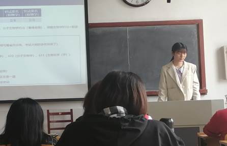 杨梦瑶从考研目标院校确定,专硕与学硕区别,专业代码等几个方面入手,详细介绍了专硕考研的注意事项,通过自己考研过程中遇到的问题及经验,为同学们提供了宝贵的择校意见。随后,杨梦瑶围绕考研英语、政治,生化等科目二的复习讲述了自己的复习方法,并针对同学们的问题做出了详细解答,指导大家科学制定学习计划。最后,师姐在时间管理、心态调整等方面讲述了很多行之有效的方法,叮嘱大家在考研期间健康作息,合理安排时间,提高学习效率。讲述结束后,现场同学与师姐进行了一对一交流。