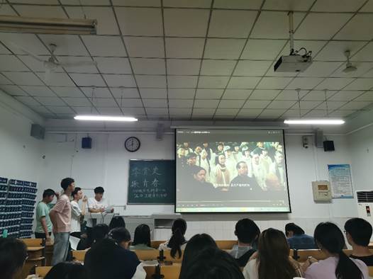 本次活动分为“党史故事我来讲”、“以史为镜,声临其境”之党史电影配音、“献礼百年,书写祝福”三个环节。团支书尚予欣首先致开幕词,呼吁班级同学积极参与党史学习,发扬五四精神,用知识文化力量铸牢中华民族共同体意识。班级五名入党积极分子分别就“红船精神”、“开国大典”、“脱贫攻坚”等主题依次分享党史故事,带领同学们走近建党百年中的重要历史事件,了解党史背后所蕴含的精神内涵和历史意义。随后进行了“以史为镜,声临其境”的党史电影配音活动,同学们现场对电影片段进行配音,在言行语调的模仿中,同学们一同回望历史,致敬先辈,感受着穿越时空的历史厚重与特殊情感。活动最后,同学们书写下心中对党的美好祝福,并合影留念。