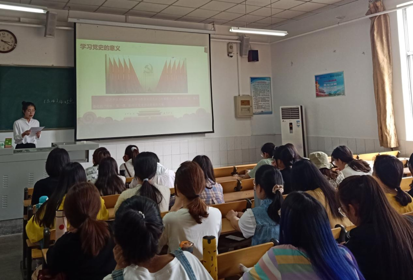 2019级生物科学(师)一、二班团支部党史宣讲活动于生物楼332教室顺利举办。本次活动邀请到了“种子宣讲团”成员谭子笑、颜小涵为同学们进行党史宣讲,团支部全体成员参加了此次活动。
