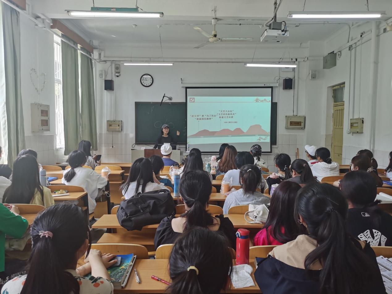 活动伊始,主持人向大家介绍了本次宣讲活动的流程。马宇婷以传承红色基因,弘扬革命精神为主题,用一个个生动感人的油画作品和红色小故事,带领同学们重温党的革命历史,感悟红色经典。孙丽婷以《黄河大合唱》的创作为背景,引导同学们学习歌曲作者冼星海身上务实求真、爱国奉献的红色精神。宣讲结束后,同学们纷纷表示,要不断从党史中汲取力量,更好地完成党交给我们的光荣历史使命。最后,两位宣讲团成员向同学们发出号召,鼓舞同学们不忘初心,勇担使命,让青春在党和人民需要的地方绽放绚烂光芒。