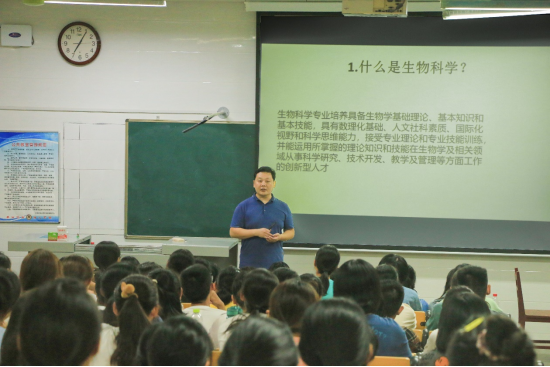 本次思政课的主题是“厚植生态文明,传承曲园精神”。三位老师将专业特色融入思政教育之中,为同学们讲授了一场精彩的思政大课堂。李玉建老师详细向大家介绍了生物科学这门基础又深奥的学科,李老师指出,生物科学是一门为天地立心,为生民立命,为往圣继绝学,为万世开太平的学科,当下生态文明蓬勃兴起,急需一大批科研人员为之全力以赴,我们在座的每一位同学都有责任担此重担,为生态文明建设贡献自己的一份力量。陈磊老师用触目惊心的数字向大家展示了人类活动对大自然的破坏之深,并号召大家要保护自然,爱护环境,利用生物知识助力人类生存环境的保护。甘延东老师向大家详细介绍了生物科学的重要意义,并呼吁大家扎实学好专业知识,将来做一个对社会有贡献的人。