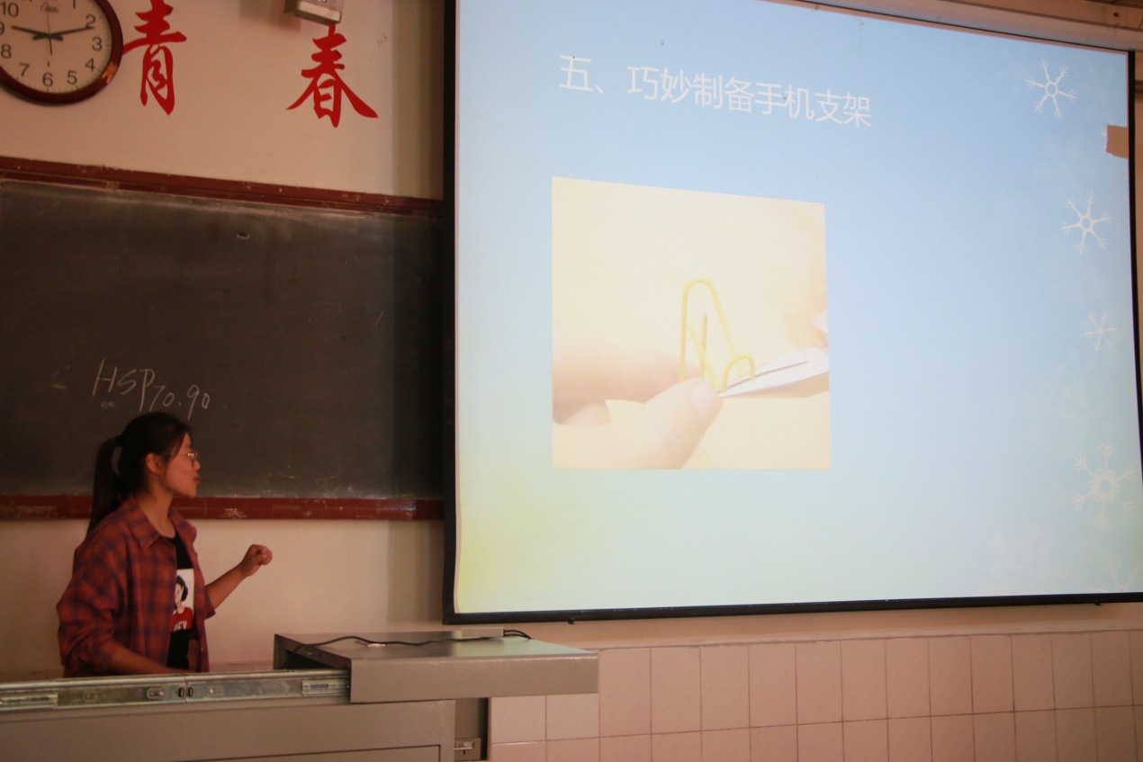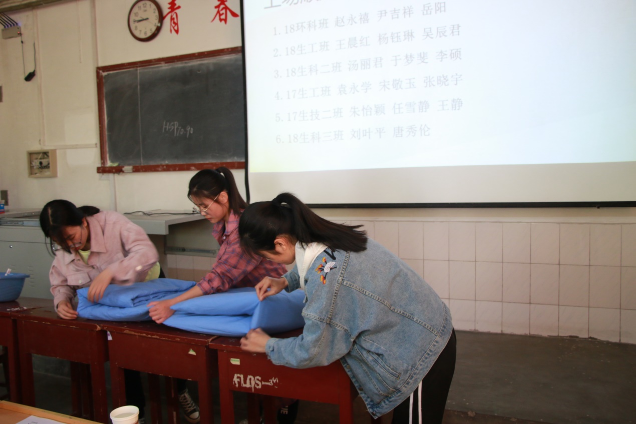 同学们比赛前早已跃跃欲试了,在“快手理乱麻”这一环节中,一上场便表现出了不俗的实力,铺平、折叠、修正,每一个动作都分外引人注目。在接下来的环节“生活小妙招”中,选手们依次上场展示了自己的宿舍生活小技巧,利用自备的道具,直观形象地在现场展示了如何利用有限的空间收纳更多的东西,快速地叠衣服以及分收垃圾等等一些实用的小妙招,令在场的同学赞叹不已。在最后的加分环节中,选手们朝气蓬勃、挥洒热情,大显身手,展现出自己不同的一面。观众们都看的津津有味。