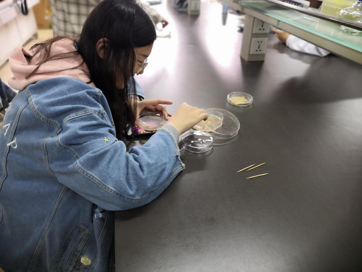 活动拉开帷幕,工作人员对参加活动的同学进行了细心的指导与讲解,增强同学们对实验原理的认识与了解,使同学们能够更顺利地完成实验,参赛同学认真地听讲并且做笔记。随后,参赛同学小心地进行实验操作,在保证着培养基的无杂菌进入的基础上,拿着灭菌竹签在培养基上仔细地进行绘画。参赛同学完成作品并标记后小心翼翼地将作品放入恒温箱中培养,培养一段时间后回到实验室观察平板形态,并且选择了其中最好的作品参与评奖活动。伴着一个个精美的作品的完成,本次大赛圆满结束。