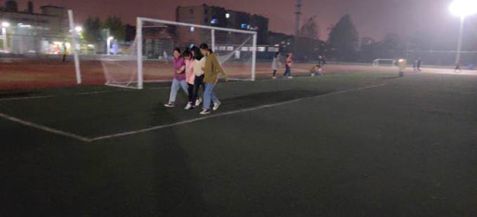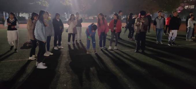 随着夜幕的降临,活动拉开序幕。参赛选手积极讨论比赛的规则和技巧,提前做好准备工作。本次活动分为四个环节:第一环节为古诗词抢答,以抽签方式决定抢答古诗词的要求,每组四名队员都积极地进行了抢答。紧接着第二环节为魔力转圈圈,每组派出两名队员分别站在100米的起点和终点,起跑前原地反手捏鼻转七圈,现场气氛活络,欢笑声、尖叫声此起彼伏。稍作休息,进行第三环节夹爆气球,气球爆破的声音为活动添加了别样色彩。最后展开考验团队默契的四人五足环节,口令声、加油声伴随着脚步声,各组的默契与团队精神在本环节展现得淋漓尽致。至此,活动接近尾声,在轻松愉快的气氛中,大家既锻炼了身体素质,又收获了弥足珍贵的友谊。