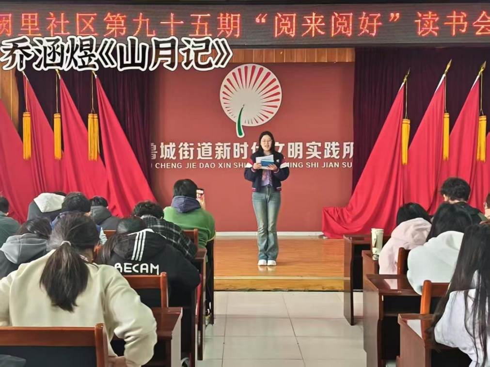 活动伊始,志愿者们通过精心设计的破冰环节,以"最打动我的一本书"为话题开启对话,迅速拉近与社区居民的情感距离。在核心分享环节,志愿者团队创新采用"1+1"模式(1本经典书籍+1个生活议题),通过《山月记》探讨自我认知的困境与突破,借《沉思录》解析现代生活的哲学智慧,用《活着》引发对生命韧性的思考。其中,志愿者曹佳乐分享《被讨厌的勇气》时,巧妙结合社区人际关系实例,引得在场居民频频点头;柯欣欣朗诵《我的阿勒泰》选段时,声情并茂的演绎让书香浸润整个活动空间。