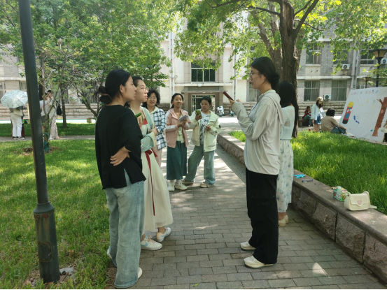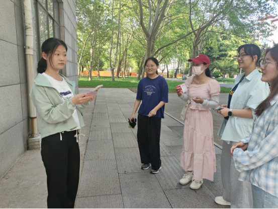活动伊始,统计好线上提前活动报名的学生人数。其次,将报名人员分为小组,每组五人,于当天下午在学院集合,分组站好。随后,每组派一名组员对答题点进行抽签,按抽签结果分别在大学生活动中心,综合楼东,桃李园东,生物楼后花园,萃华园南五个答题点进行答题,回答一些与专业相关的有趣的题目,最后答题成功者可以领取自己喜欢的小礼品,本次游园活动取得圆满成功。