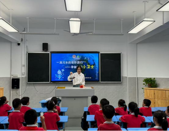 志愿者首先通过图片展示,向同学们介绍污水对环境和生态的危害。在互动问答环节,孩子们踊跃举手、积极发言,围绕“河水是怎样净化的”“污水进入大自然会产生什么后果”等问题与志愿者热烈交流。针对生活中污水的来源等疑问,志愿者们一一细致解答,现场气氛活跃。