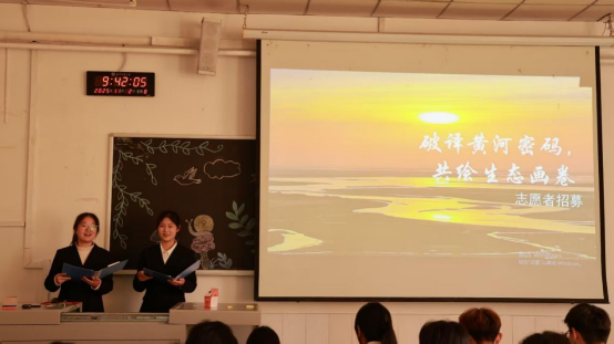 于生物楼128教室成功举办“破译黄河密码,共绘生态画卷”黄河生态保护志愿者选拔大赛。活动吸引了各专业同学踊跃参与,现场氛围热烈,展现了生科学子守护母亲河的深切情怀与责任担当。