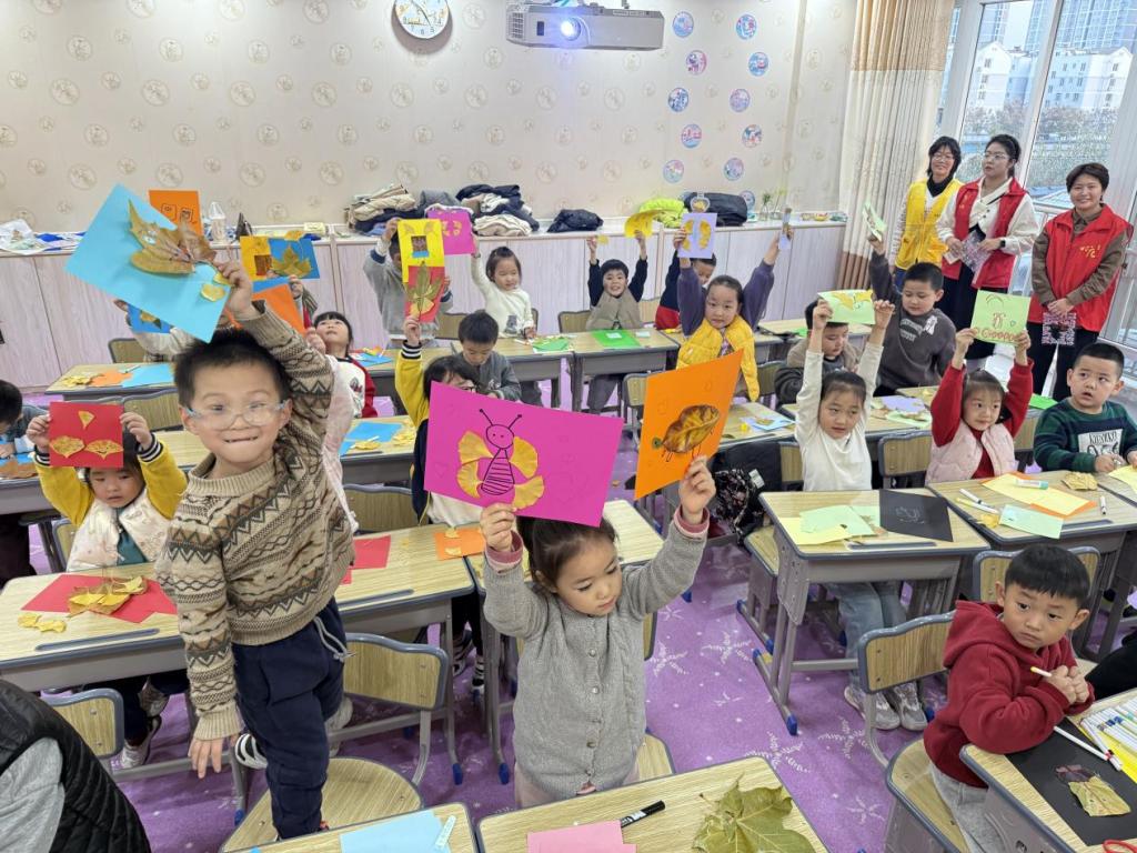 活动以手工创作拉开序幕,志愿者们利用树叶、彩纸等材料,演示叶子画制作技巧,引导孩子们发挥想象力将自然素材转化为创意画作。动手实践中,孩子们的观察力与创造力得到锻炼;作品分享环节,现场欢声笑语不断,交流氛围热烈。
