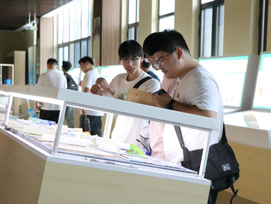 在讲解员引导下,新生们依次参观了“教育溯源”“师德典范”“教育变迁”等核心展区。他们在泛黄教案手稿前驻足,见证老一辈教师对知识点的精心打磨;透过展柜里的早期教具(民国算盘、80年代粉笔盒等)直观感受教育条件的变迁;教师事迹展板上“扎根山区四十年”“带病坚守讲台”等故事,令不少同学动容。讲解员结合展区内容,讲述陶行知先生的教育理念、于漪老师的语文教学艺术等案例,让新生们对“师德”二字有了更具象的理解。不少同学拿出笔记本记录触动自己的语句,现场氛围庄重而温暖。