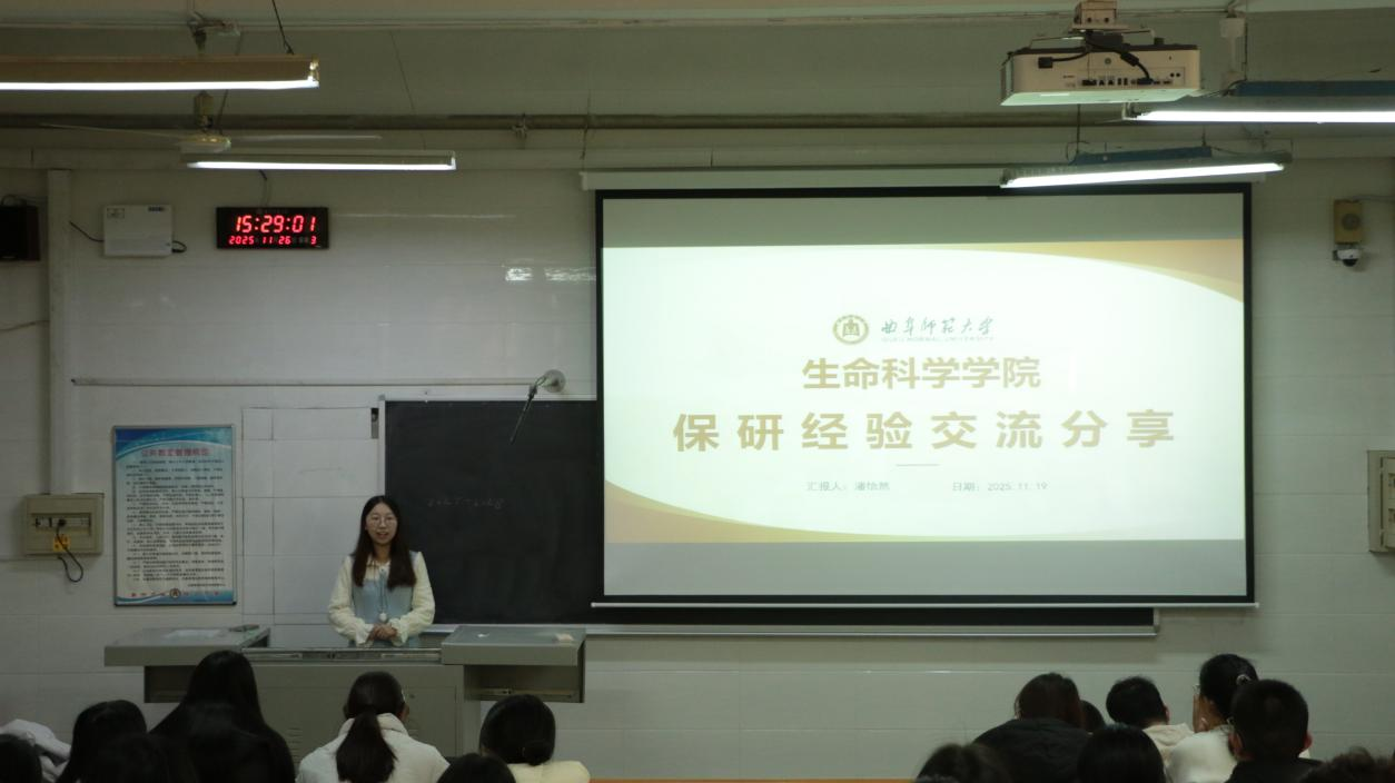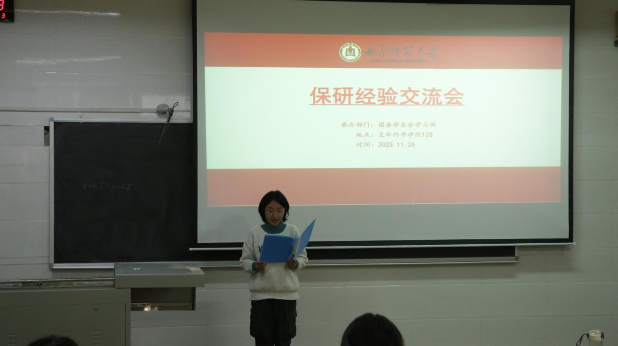 为帮助低年级学子拨开保研迷雾,明确成长路径,精准掌握申请策略、材料筹备、面试实战等关键技能,11月26日,“研途领航——保研经验分享会”在生物楼128教室成功举办。本次活动特邀马慧娴、潘怡然、侯慧琳三位保研成功的优秀学生,以亲身经历为蓝本,为现场同学带来了一场干货满满的经验盛宴。