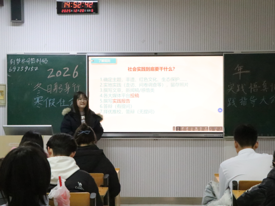 为深化2025级新生对社会实践的理解,激发学生参与实践活动的主动性,引导更多同学投身社会实践,12月20日,学院团委社会实践部于生物楼101教室举办“冬日躬身行,实践悟真情”社会实践指导大会。活动面向2024级、2025级全体同学。