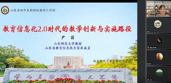 为拓展教师视野、开拓教学思维,积极探索信息化时代的教学改革,2023416日山东省初中生物特级教师工作坊特邀请山东师范大学尹苗教授做题为《教育信息化2.0时代的教学创新与实施路径》的专题报告。会议由山东省初中生物特级教师工作坊主持人燕艳主持,工作坊全体成员及曲阜师范大学部分研究生参与此次会议。
