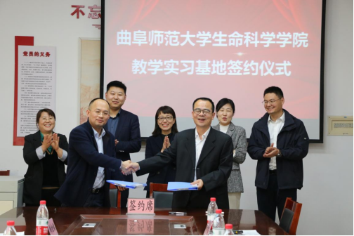 活动最后,李志广书记代表学院与慈海鑫董事签署了《曲阜师范大学实习基地协议书》,并一起为教学实习基地揭牌。