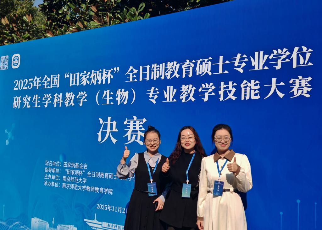 2025年全国“田家炳杯”全日制教育硕士专业学位研究生学科教学(生物)专业教学技能大赛决赛于近日在南京师范大学举行。足球比分手机版 郭春晓老师指导的张飚同学荣获全国一等奖,燕艳老师指导的任思佳同学荣获优秀教学设计奖,郭春晓老师荣获“优秀指导教师”奖。