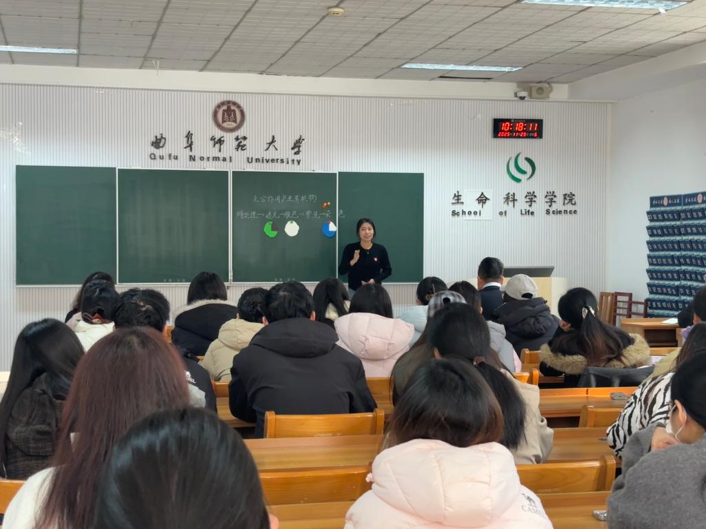 研究生教学技能示范课展示”活动。活动由院长助理赵超主持,研究生辅导员郭春晓、石鲁鹏及学科教学(生物)全体研究生参加。
